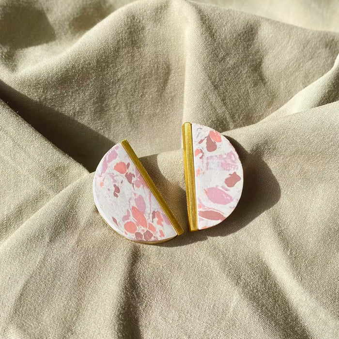Estos coloridos pendientes inspirados en la textura del mármol están hechos artesanalmente con la técnica japonesa neriage. Esta combinación hace que estos minimalistas a la vez que sofisticados pendientes sean ideales para llevar todos los días.