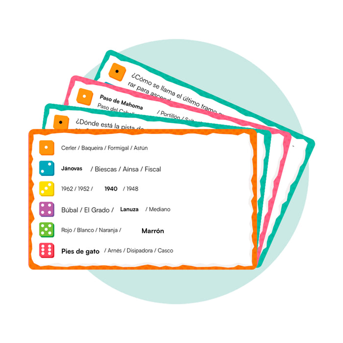 Juego de mesa acerca de la montaña. Juego de mesa tipo trivial con preguntas sobre la montaña. Juego de preguntas y respuestas con el que descubrirás cuánto sabes sobre lugares, deportes, hitos, curiosidades, gastronomía, fauna y flora…