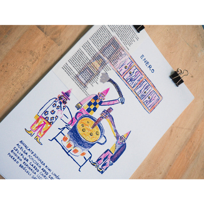 Este es un calendario de cocina que no es un calendario. No tiene fechas ni días, porque eso no es tan importante. En la cocina es necesario parar un poco el tiempo a la vez que prestarle atención. Hay que estar presente , requiere mimo y cuidado.