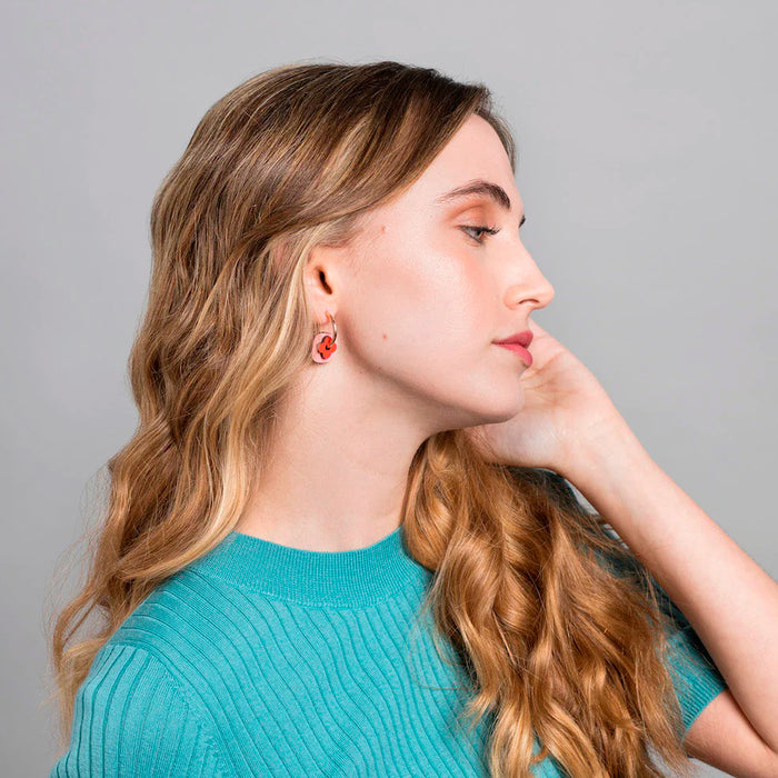 Pendientes de aro Materia Rica - Flower Tile Red and Pink