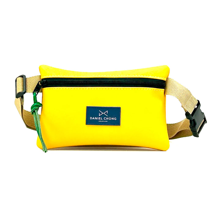 Riñonera impermeable Daniel Chong - Amarilla con correa beige y detalle verde